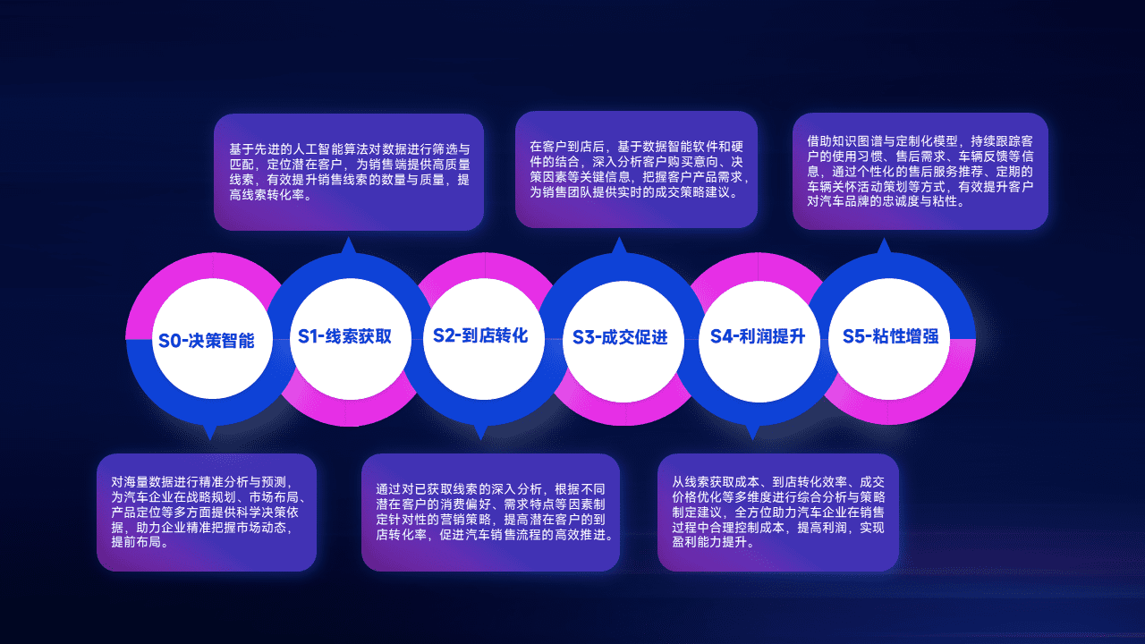 通过拓宽潜在客户来源、、、、优化线索分配并提高到店转化率,,,以增强销售效率。。。。同时,,,,利用线索数据不断优化分析模型,,,有效提升转化率,,,扩大营销影响力。。。